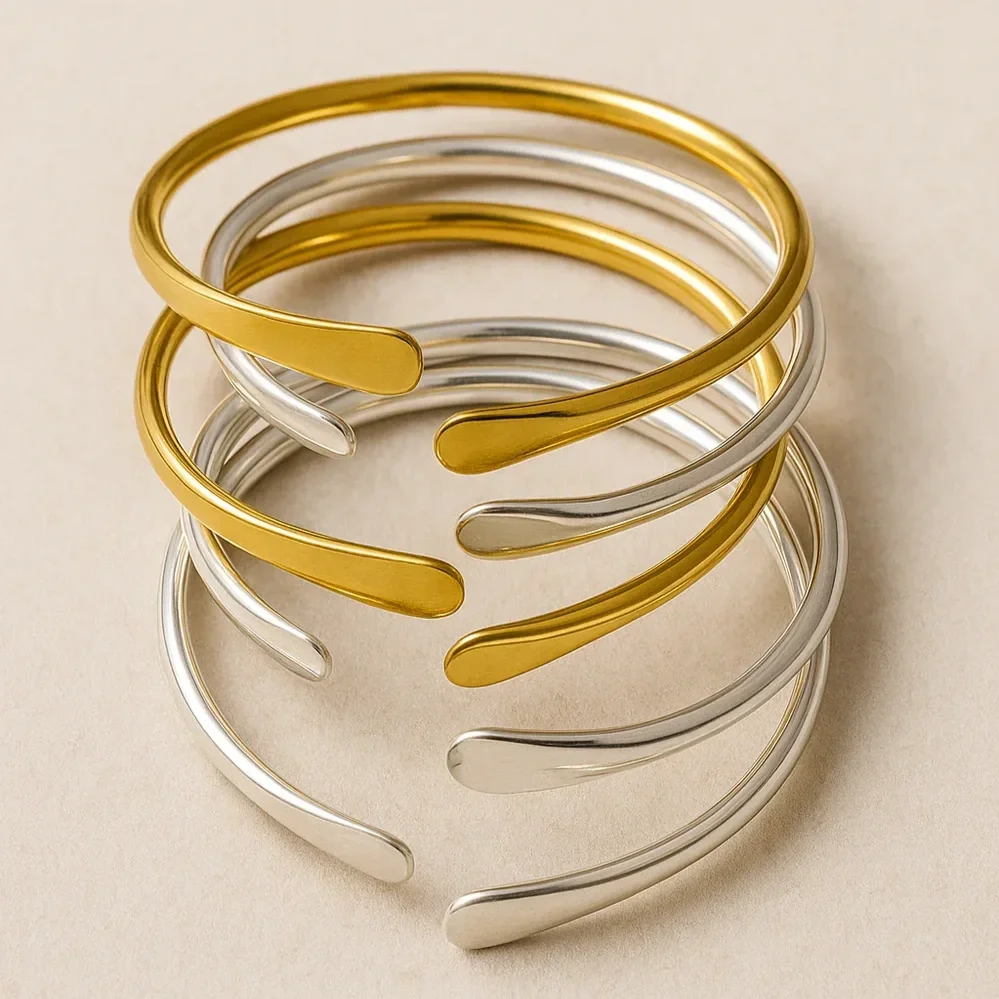 Stack these spiraling beauties on your wrist for instant polish. With their signature twisted silhouette these coil bangles transform even your most laid-back looks into something effortlessly chic. Simple yet striking—the perfect everyday accessory that does the heavy lifting for your style.