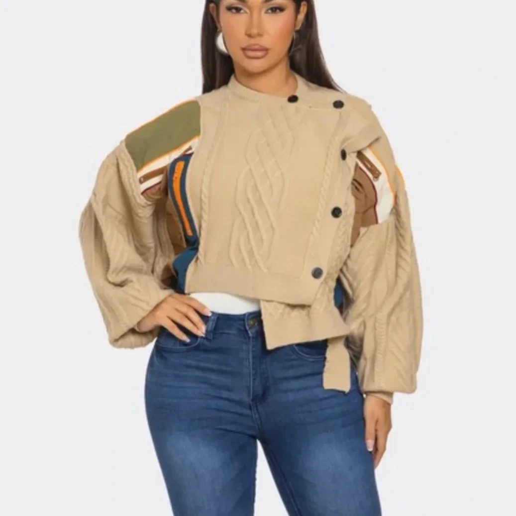 This is a scarf inspired by draping a sweater over your shoulders and tying it in the front. Each end sports a ribbing cuff--just like a sweatshirt sleeve. A fun and stylish way to keep warm! This scarf shows off our "Spots" print in Cornflower blue.