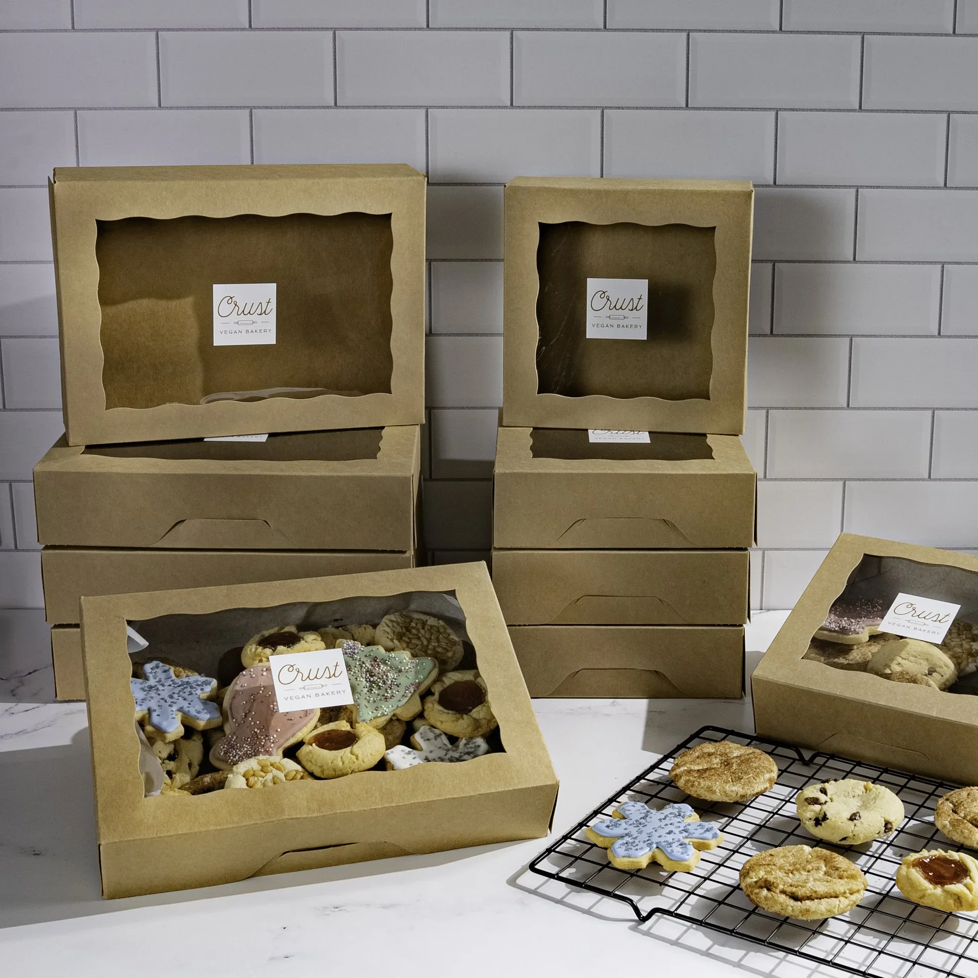 Holiday Cookie Boxes – The small cookie box contains 1 dozen cookies. The large cookie box contains 2 dozen cookies. The cookies are an assortment of chocolate chip, gingerbread, snickerdoodle, jam thumbprint, pignoli, and frosted sugar cookies. The boxes all contain gluten, soy, and nuts (only almonds & pine nuts). Boxes can be pre-ordered online here for pickup at Crust’s storefront.