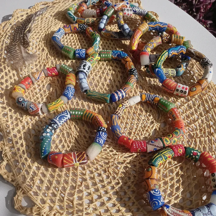 Two different styles available of these Nigerian recycled beaded bracelets.